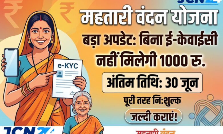 महतारी वंदन योजना में बड़ा अपडेट: बिना ई-केवाईसी नहीं मिलेगी 1000 रुपए की मासिक राशि, 30 जून तक निःशुल्क कराएं e- KYC प्रक्रिया पूरी…