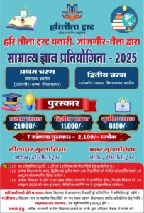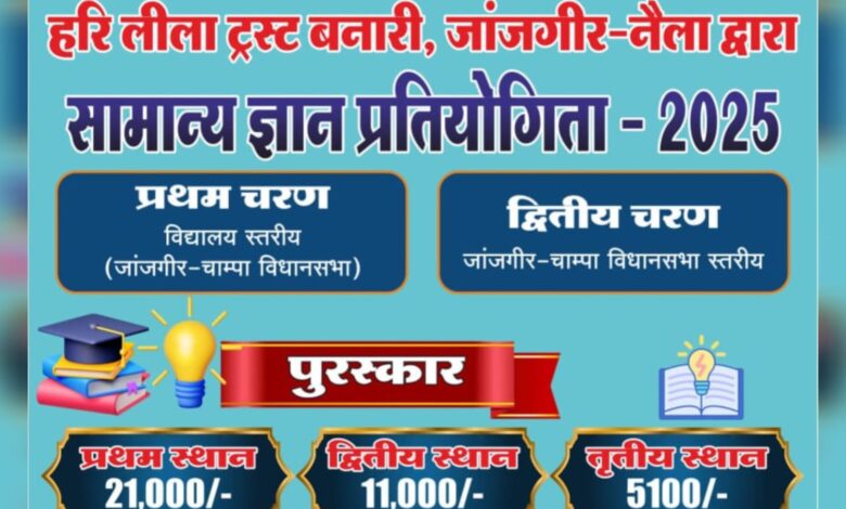 हरिलीला ट्रस्ट के द्वारा कैरियर गाइडेंस और सामान्य ज्ञान प्रतियोगी परीक्षा का होगा आयोजन, प्रथम पुरस्कार 21 हजार रुपए, जानिए कब और कैसे होगी प्रतियोगी परीक्षा…