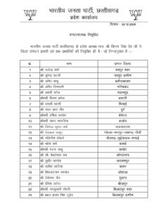 छत्तीसगढ़ BJP ने घोषित किए जिला संगठन प्रभारी–सह प्रभारी; जांजगीर-चांपा के प्रशांत सिंह को रायगढ़ और अमर सुल्तानिया को मिला जशपुर का प्रभार…