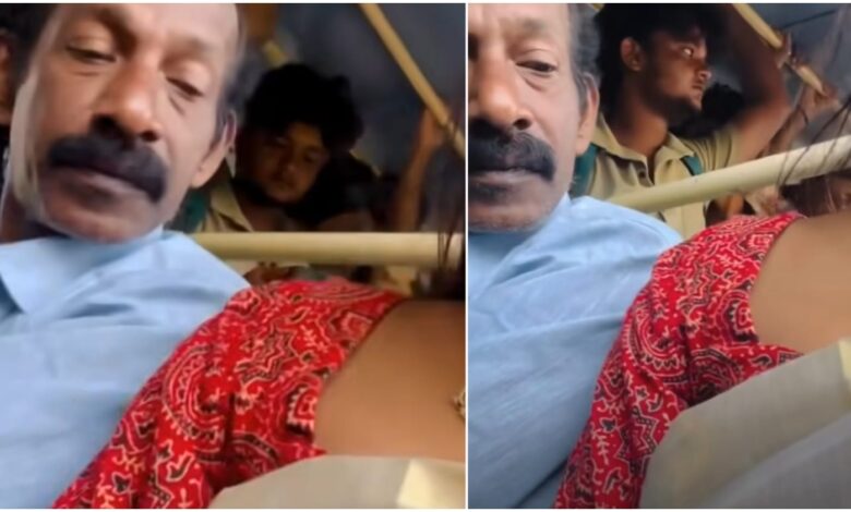 केरल के कोच्चि का ये वीडियो एक कंटेंट क्रिएटर का है जिसमें बस में उनके बगल में बैठे एक अधेड़ उम्र के व्यक्ति की ओछी हरकत (गंदी नजर) क़ैद हो गई. जिसमें दिख साफ़ दिख रहा है कि कंटेंट क्रिएटर लड़की ट्रेडिशनल केरल साड़ी पहने बस में बैठी हुई है और फिर भी उनके बगल की सीट में बैठा व्यक्ति बार-बार उनके वक्षों को गलत नजर से घूर रहा है.