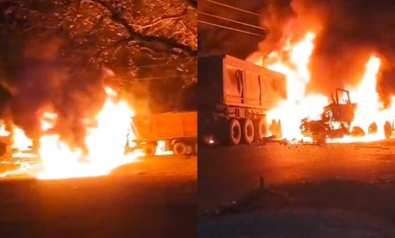 - तीन ट्रेलरों की जबर्दस्त टक्कर के साथ लगी आग, एक चालक की मौके पर मौत,