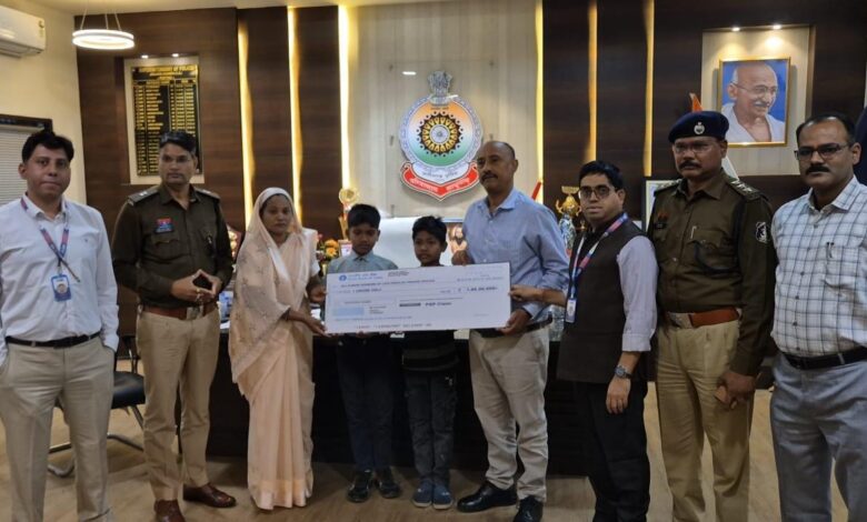 जांजगीर-चांपा: पुलिस सैलरी पैकेज का मानवीय पहलू, सड़क दुर्घटना में शहीद आरक्षक की पत्नी को मिला 1 करोड़ रुपये का बीमा चेक, परिवार को मिला आर्थिक संबल..